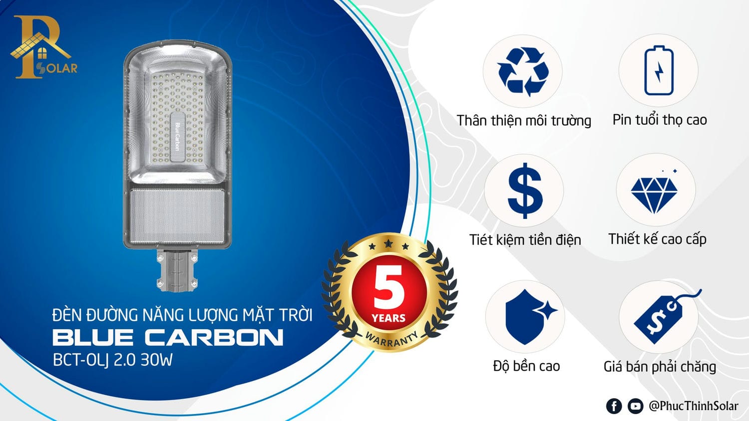 Đèn Năng Lượng Mặt Trời Blue Carbon 30W BCT - OLJ2.0