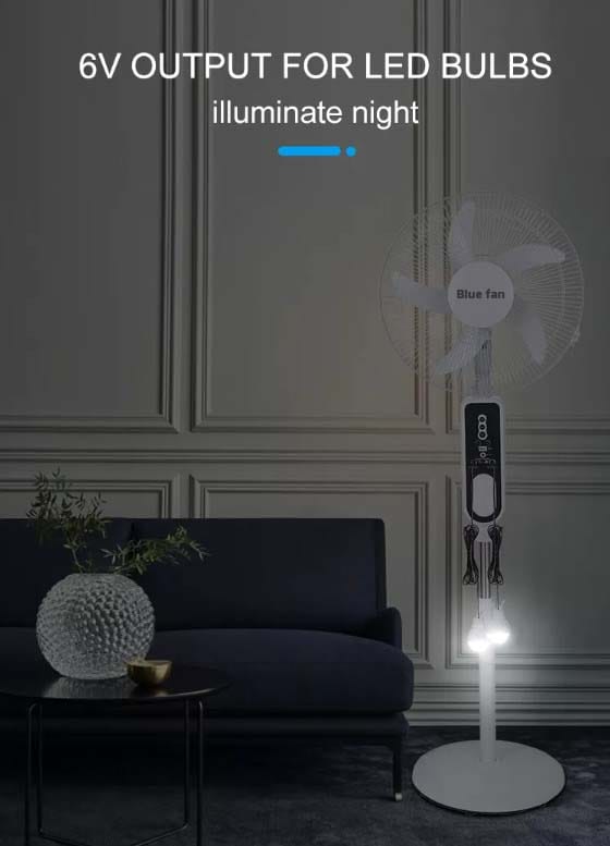 Quạt có thiết kế hiện đại, trẻ trung, nhiều tính năng cùng 5 cấp độ gió, công suất 20W cho tốc độ gió cao hơn so với các sản phẩm thông thường. Động cơ không chổi than cho khả năng hoạt động mạnh mẽ, công suất lớn nhưng vận hành một cách êm ái. Pin lưu trữ LiFePO4 lên đến 22.000 mAh.