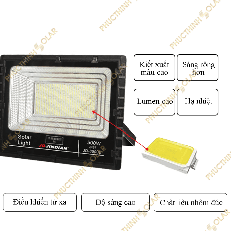 Đèn pha năng lượng mặt trời 500W JinDian JD-8500L