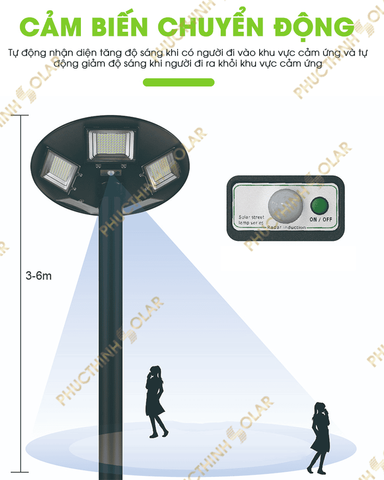 – Đèn có cảm biến chuyển động nếu muốn cho đèn sáng liên tục các bạn có thể cài đặt trên điều khiển hoàn toàn dễ dàng
